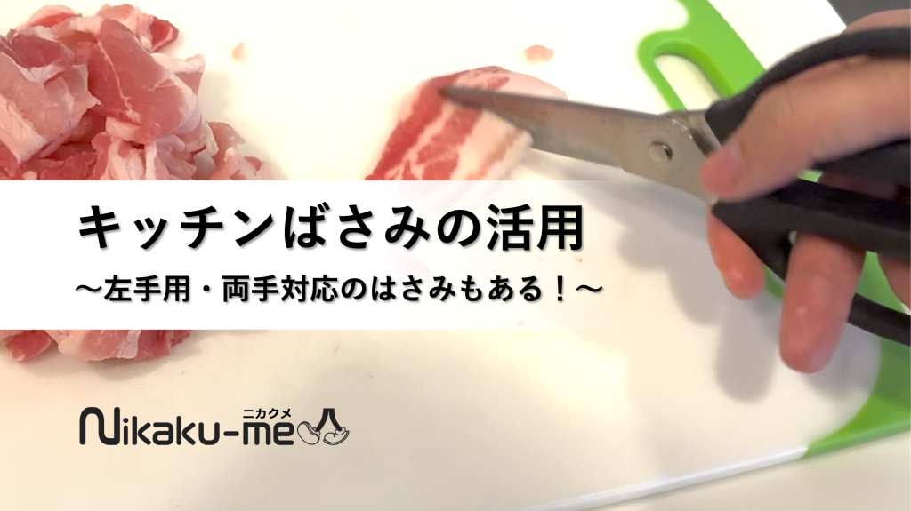 片手で料理をする場合には,包丁だけでなくキッチンばさみなどの道具を使うことも一つの方法です.
